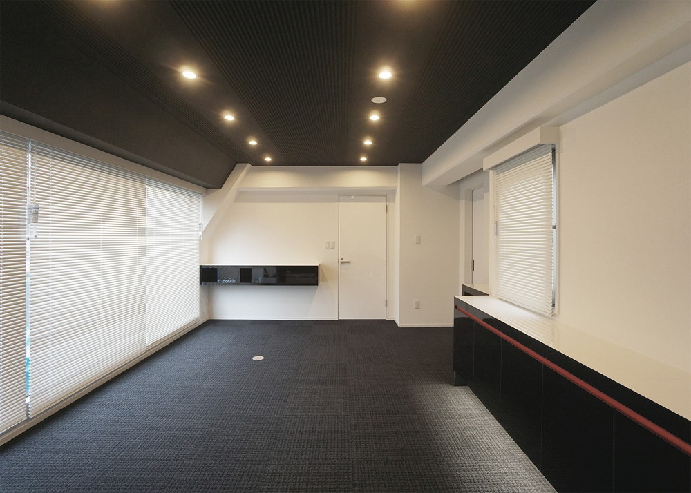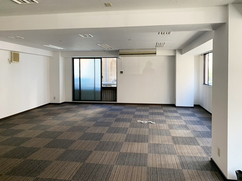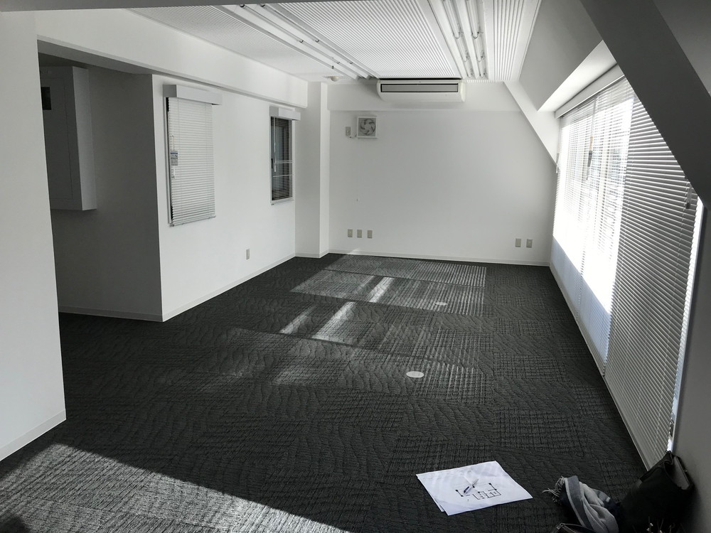 名古屋で事務所の内装工事。 奥の壁は鏡になっていて、狭い空間も広さを感じることができました。