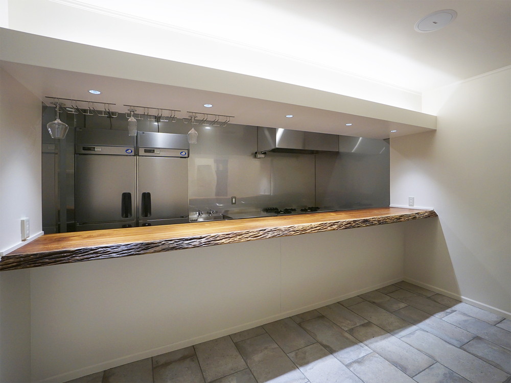 東京都 国立市の店舗 改修工事。 インパクトのあるカウンターが完成しました。